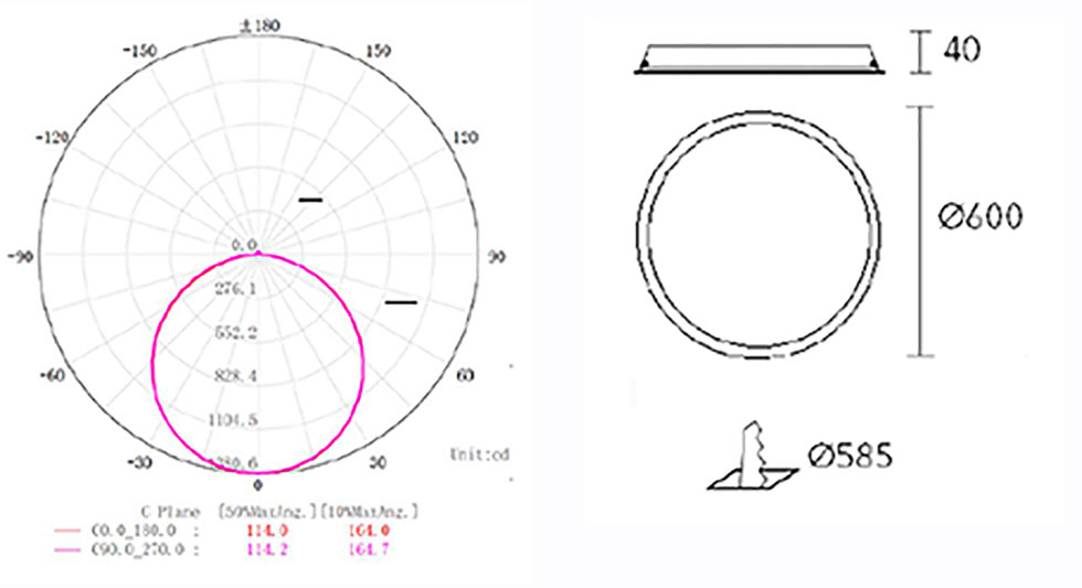 Panel LED embutido elegante 45W formato 600x40mm circular. Cuerpo acero conformado con disipador de temperatura. Diámetro 600mm, profundidad 40mm. Difusor opal para iluminación uniforme y suave.