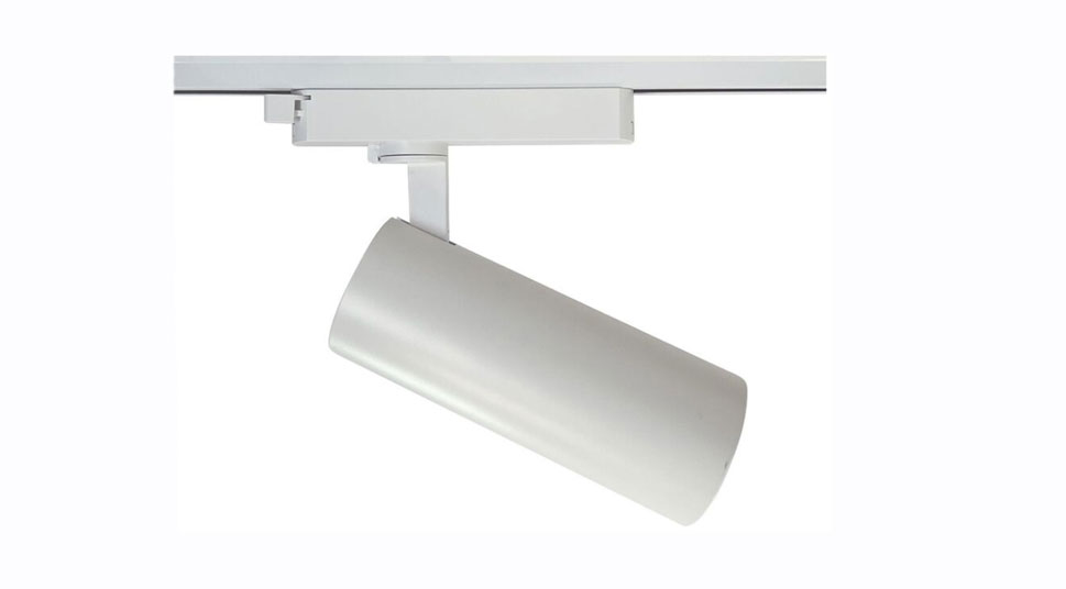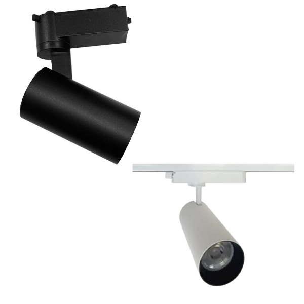 Foco LED para montaje en riel monofásico, ideal para aplicaciones residenciales, comerciales e institucionales. Destaca por su bajo consumo, alta eficiencia y larga vida útil, con disipador de temperatura en aleación de aluminio.